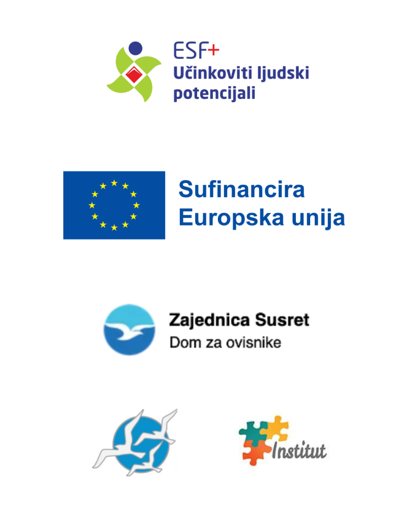 Projekt sufinancira Europska unija iz Europskog socijalnog fonda plus. Sadržaj ovog materijala isključiva je odgovornost Doma za ovisnike Zajednica Susret